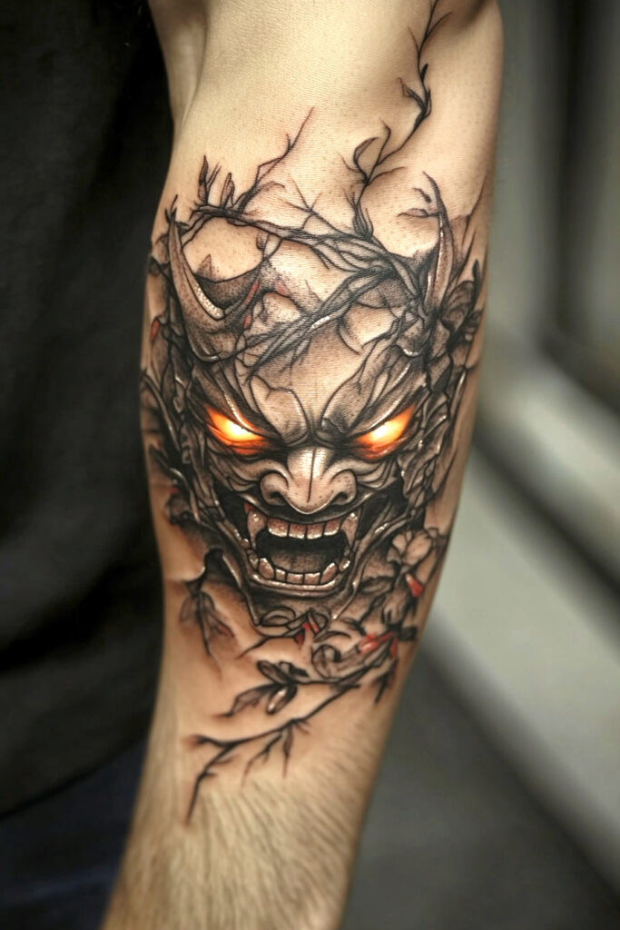 8. Oni Mask with Flames Tattoo