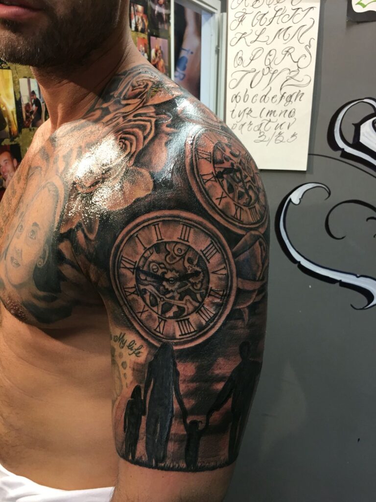 Many men eventually extend shoulder tattoos into sleeves. Planning ahead helps your tattoo blend smoothly with future designs.