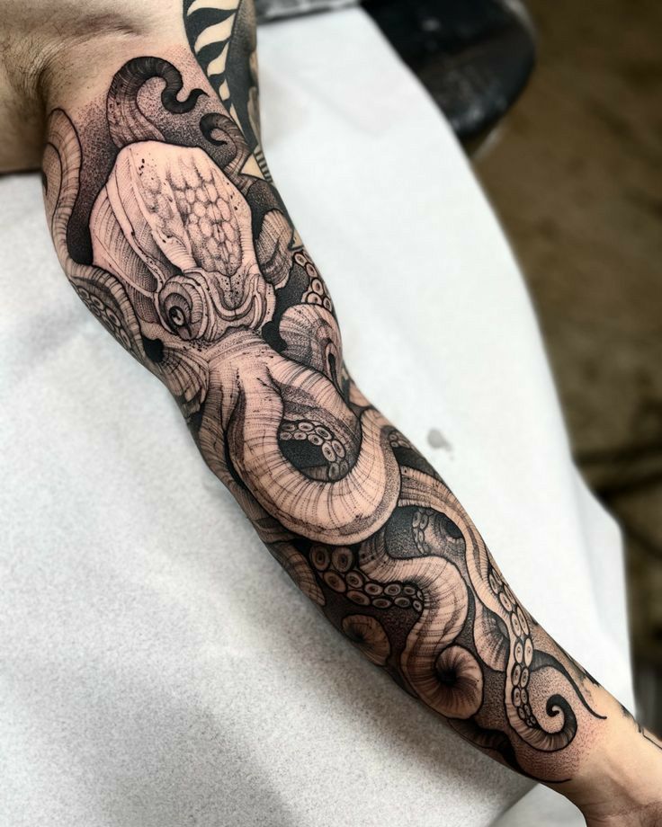There’s something primal and powerful about Norse-inspired tattoo art. Runes, Mjolnir, Yggdrasil (the world tree), ravens, wolves — the imagery from Viking mythology is rich with symbolism and translates beautifully onto forearm skin. These tattoos tend to use a mix of heavy blackwork, dotwork shading, and intricate knotwork that echoes ancient Celtic and Scandinavian craftsmanship. Men who connect with themes of honor, strength, ancestry, and warrior spirit find that Norse tattoos speak directly to that part of their identity. The rugged aesthetic pairs well with both a clean professional look and a more rugged, outdoor lifestyle.