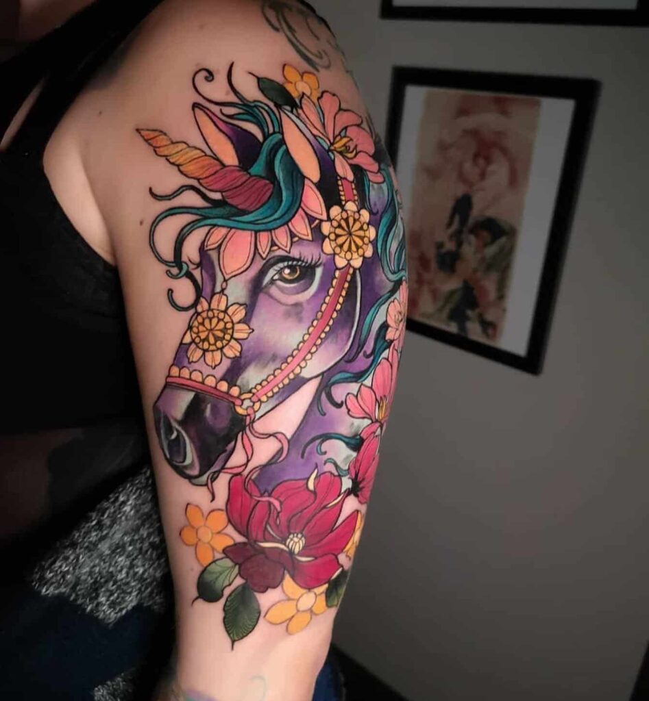 If you’ve ever wanted a tattoo that looks painted on, watercolor ink is your best friend. Think splashes of pink, blue, and purple — like your skin turned into an artist’s canvas.