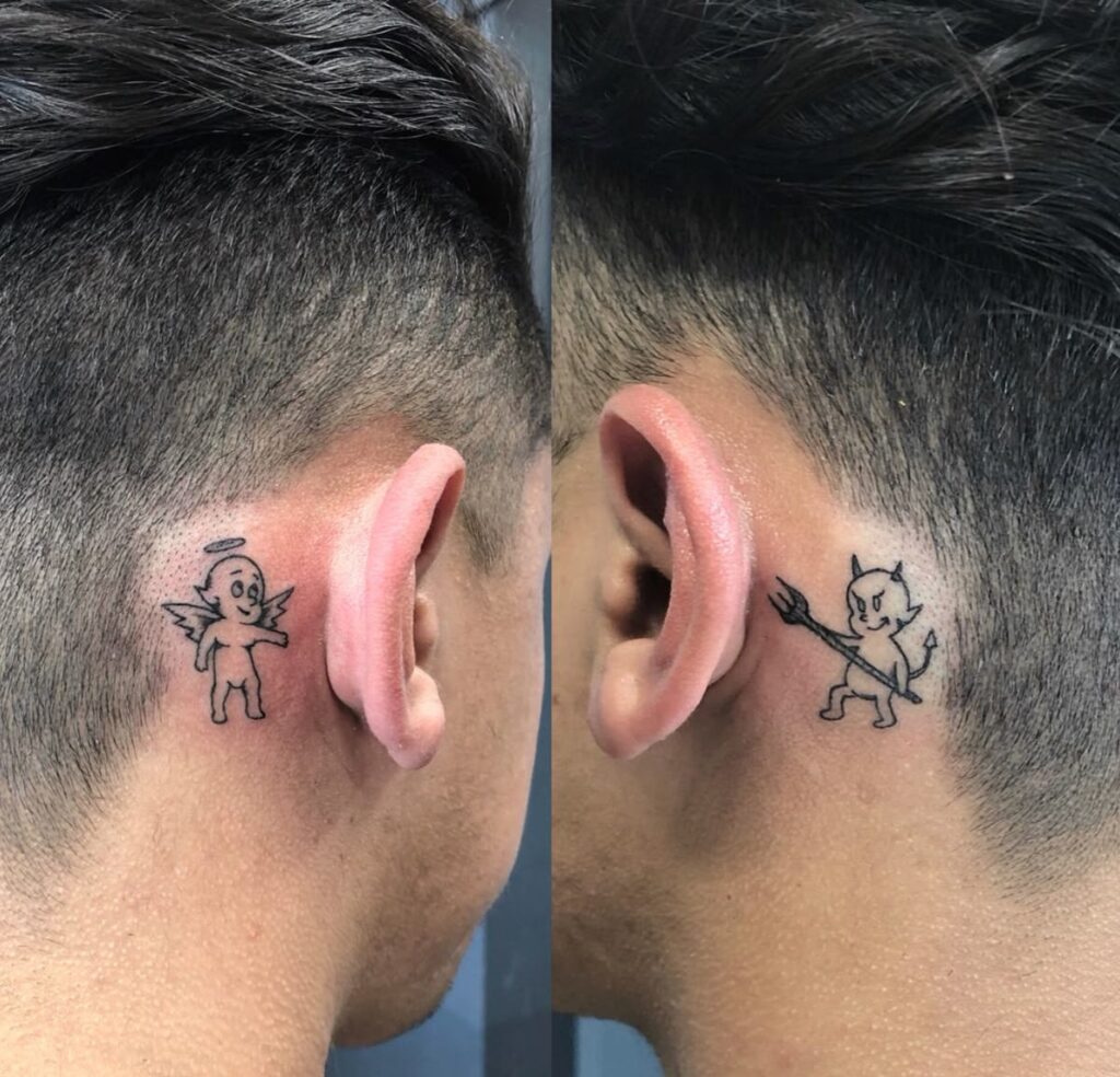 Getting matching tattoos with someone you care about? A tiny symbol behind the ear hits perfectly. It looks whisper-level subtle but still carries huge meaning.