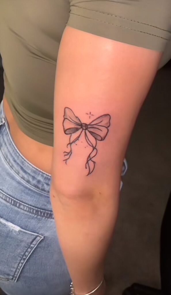 The bow keeps the tattoo visually soft, even when the meaning hits hard. Ever noticed how emotional tattoos feel easier to wear when the design looks gentle?
