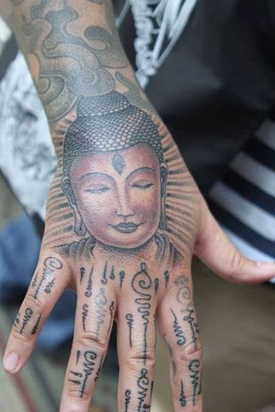 - A bold buddha hand tattoo men design