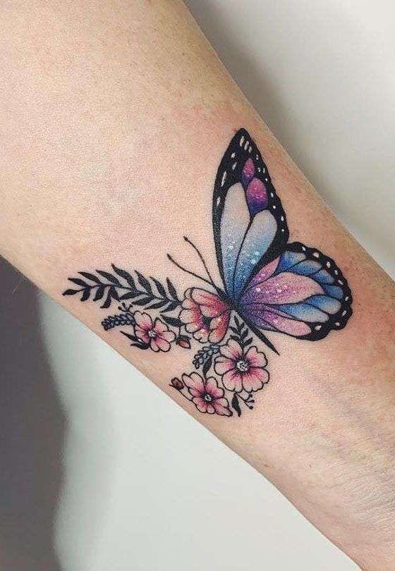 Combining butterflies with flowers creates a harmonious tattoo that symbolizes life, rebirth, and beauty. Popular flower pairings include roses (love), lotus (spiritual growth), and cherry blossoms (femininity). This design looks stunning on the forearm or back.