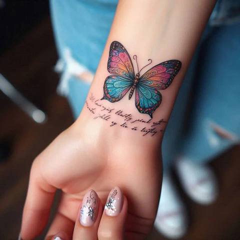 Adding a meaningful quote alongside a butterfly tattoo personalizes the design. Popular phrases include “transform,” “rise again,” or “fly free.” This tattoo often appears on the ribcage, arm, or back, combining beauty with motivation.