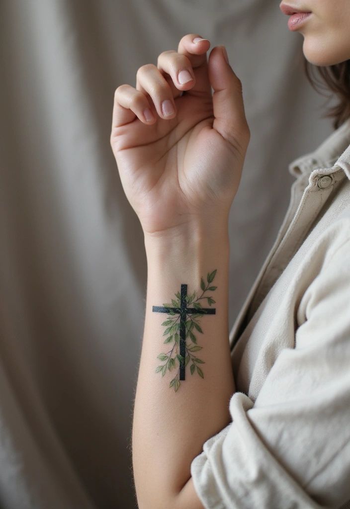 If you want meaning baked in, this is it. Adding a name or important date turns a cross tattoo into a personal memorial.