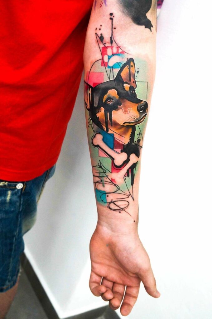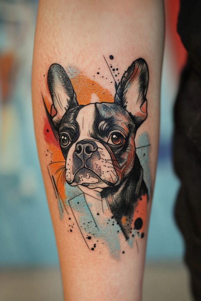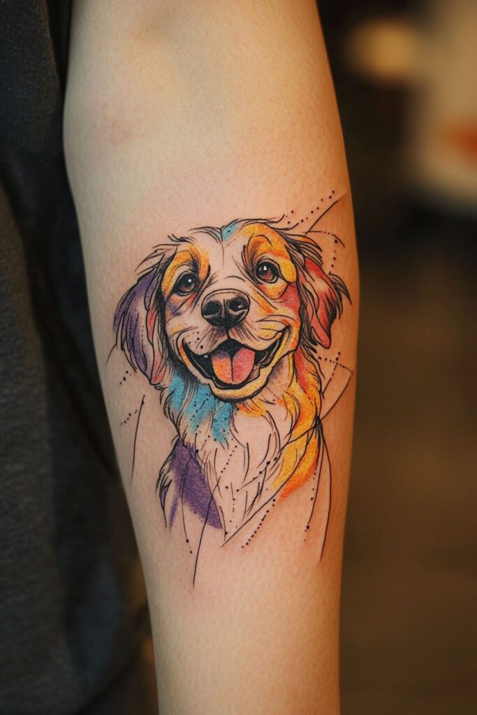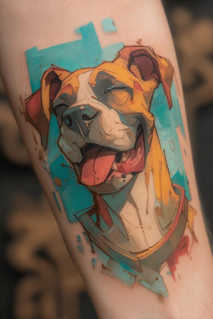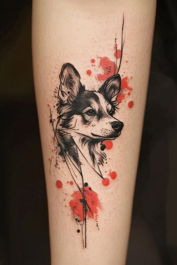 Abstract dog tattoos focus on feeling rather than form. These designs use shapes, brush strokes, or negative space to represent connection instead of realism.