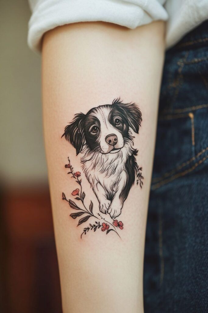 Dog name tattoos work because names carry stories. A flowing script or handwritten font adds emotion without visual overload.