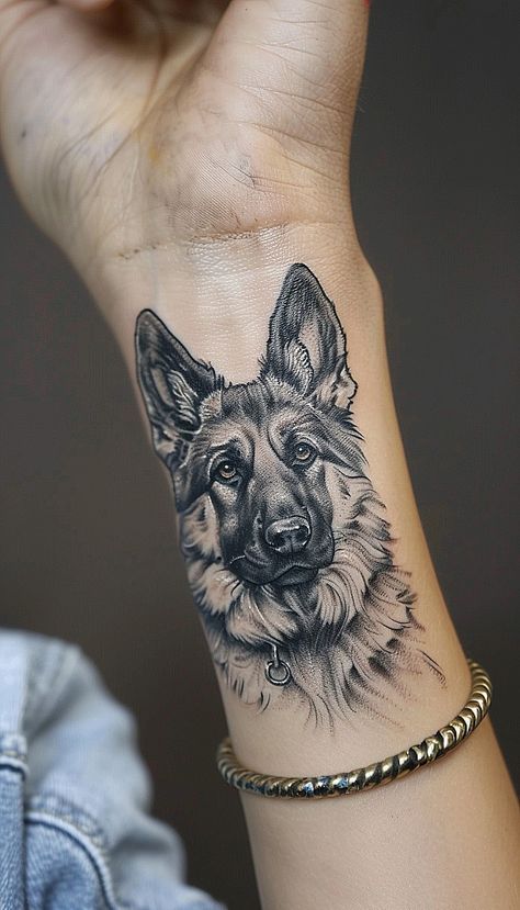 Large dog tattoo designs often live on the arm, chest, or thigh. These tattoos allow for full storytelling, including backgrounds, scenery, and emotional depth.