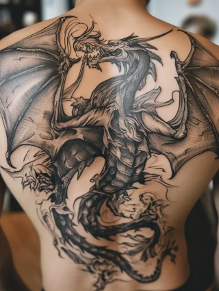 The dragon back tattoo is one of the most striking and detailed tattoo styles. Since the back offers a large canvas, tattoo artists can create lifelike dragons with dynamic poses, vibrant colors, and elaborate details.