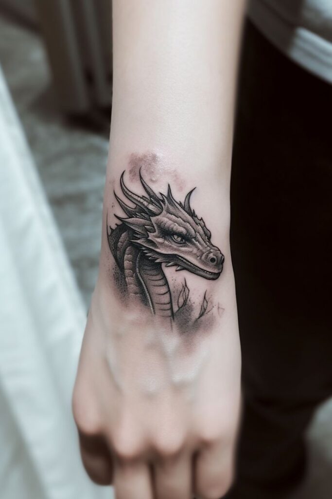 For those who prefer subtle designs, the minimalist dragon tattoo is an elegant choice. Using simple lines, fine details, or small-scale illustrations, these tattoos are often placed on the wrist, ankle, behind the ear, or collarbone.