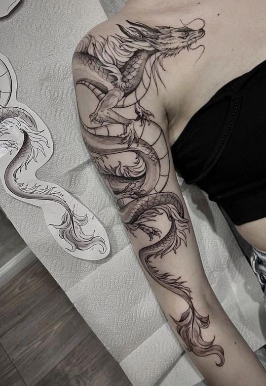 This style works well with both Japanese and Chinese dragon depictions, but many opt for a custom design that blends cultural symbolism with modern tattoo artistry.