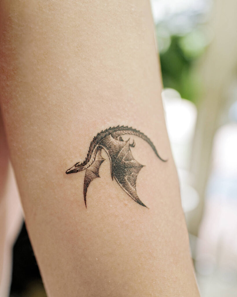 Not every dragon tattoo has to be large and dramatic. A small dragon tattoo can be just as meaningful, perfect for those who want a subtle yet powerful design. Popular placements include the wrist, ankle, neck, or ribcage.