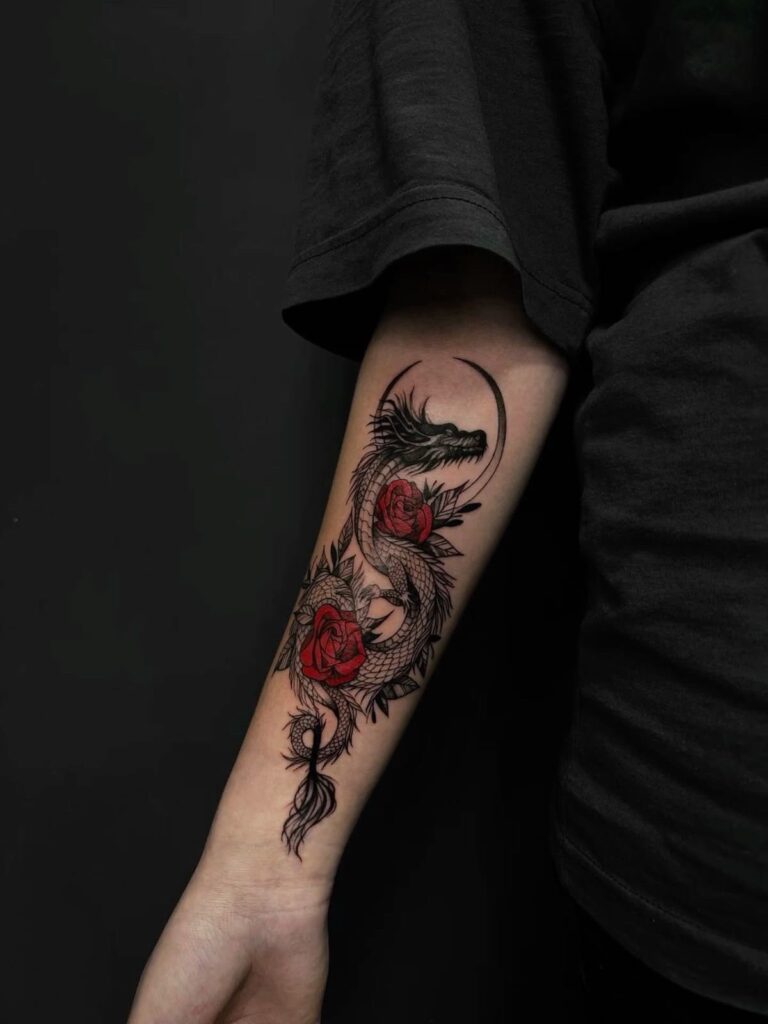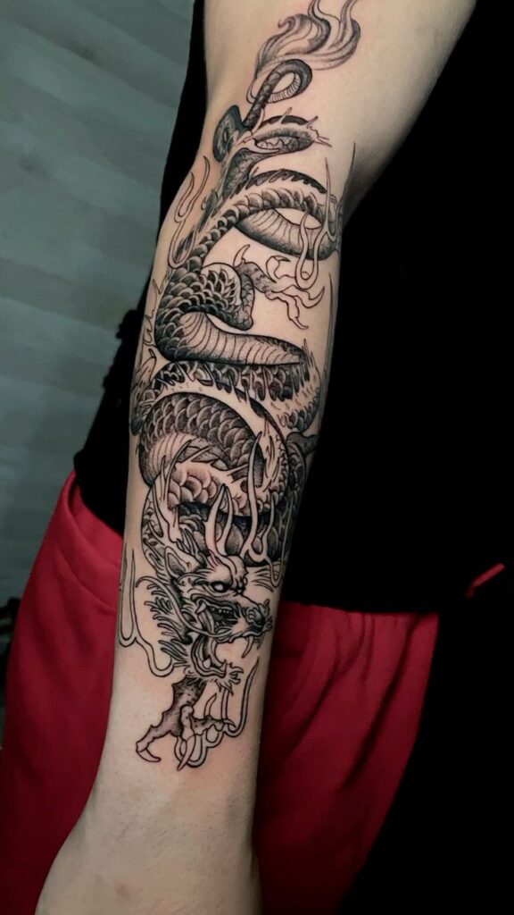 I’ve seen these designs turn arms into full storytelling canvases. The dragon coils, twists, and commands attention.