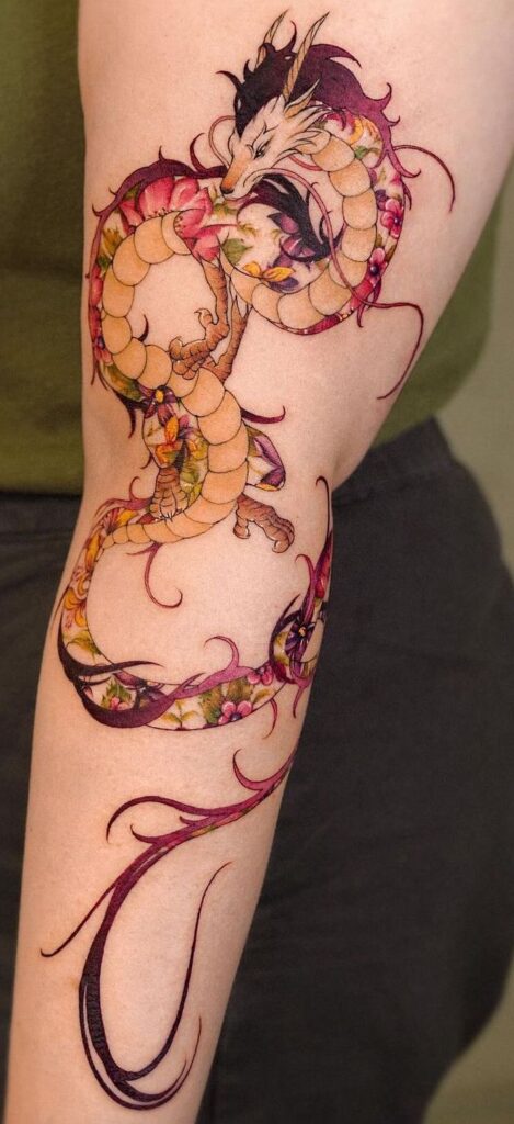 7. Dragon Wrapped Around Arm Tattoo for Women