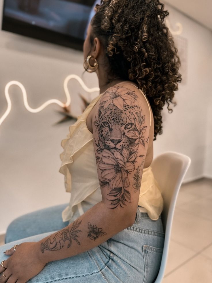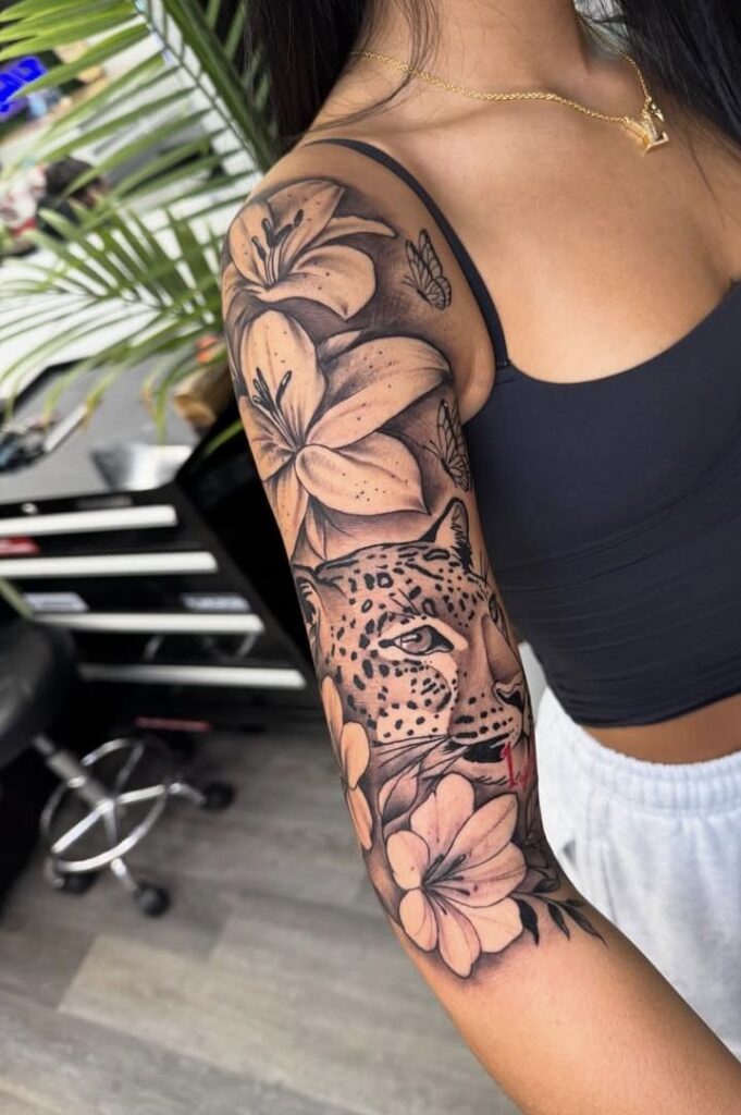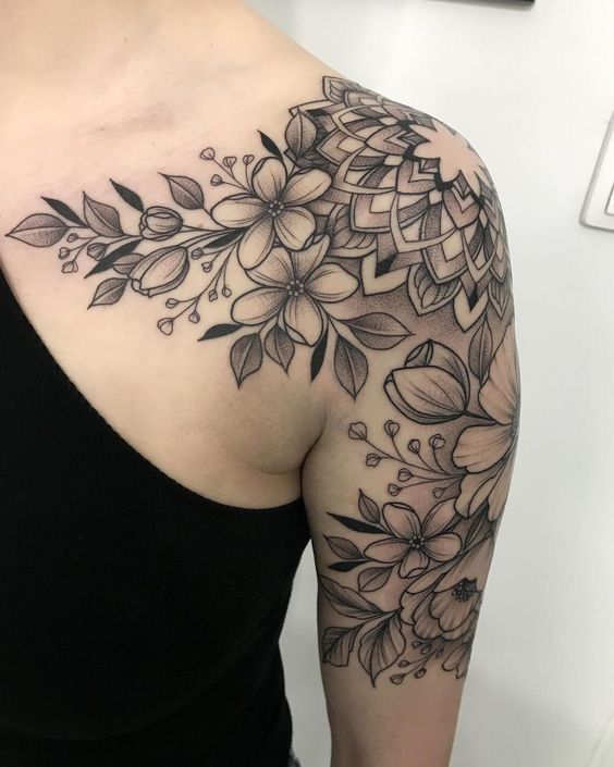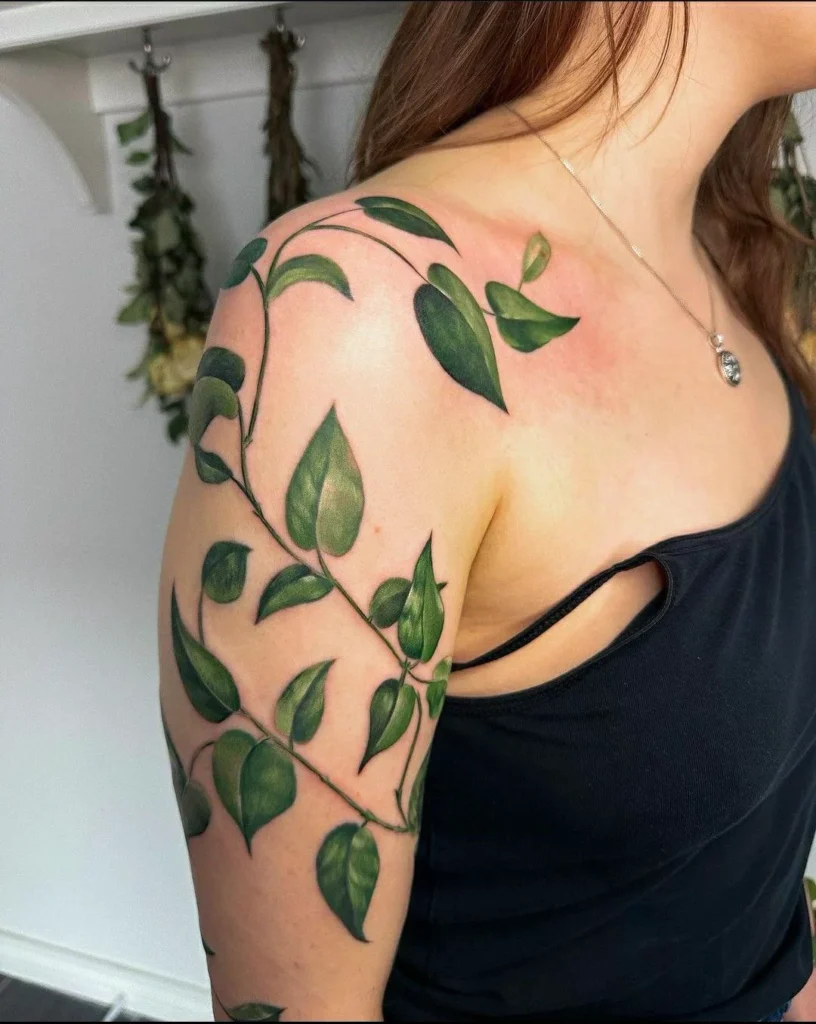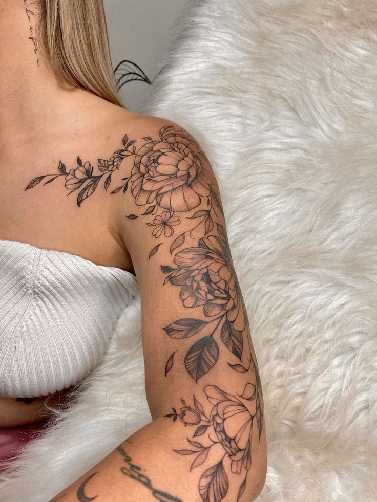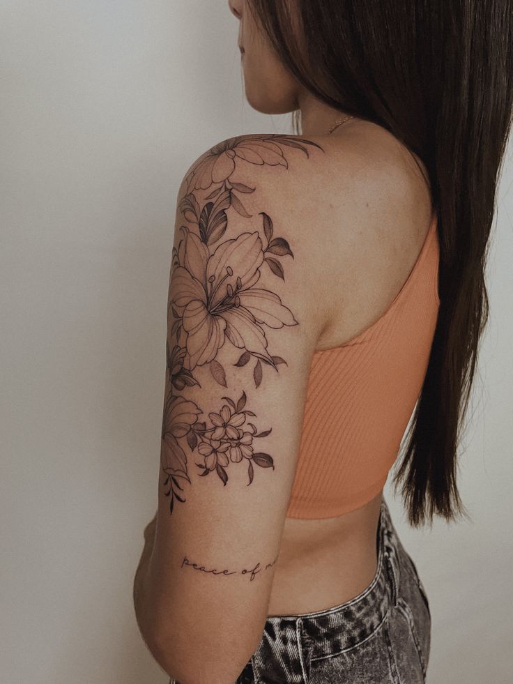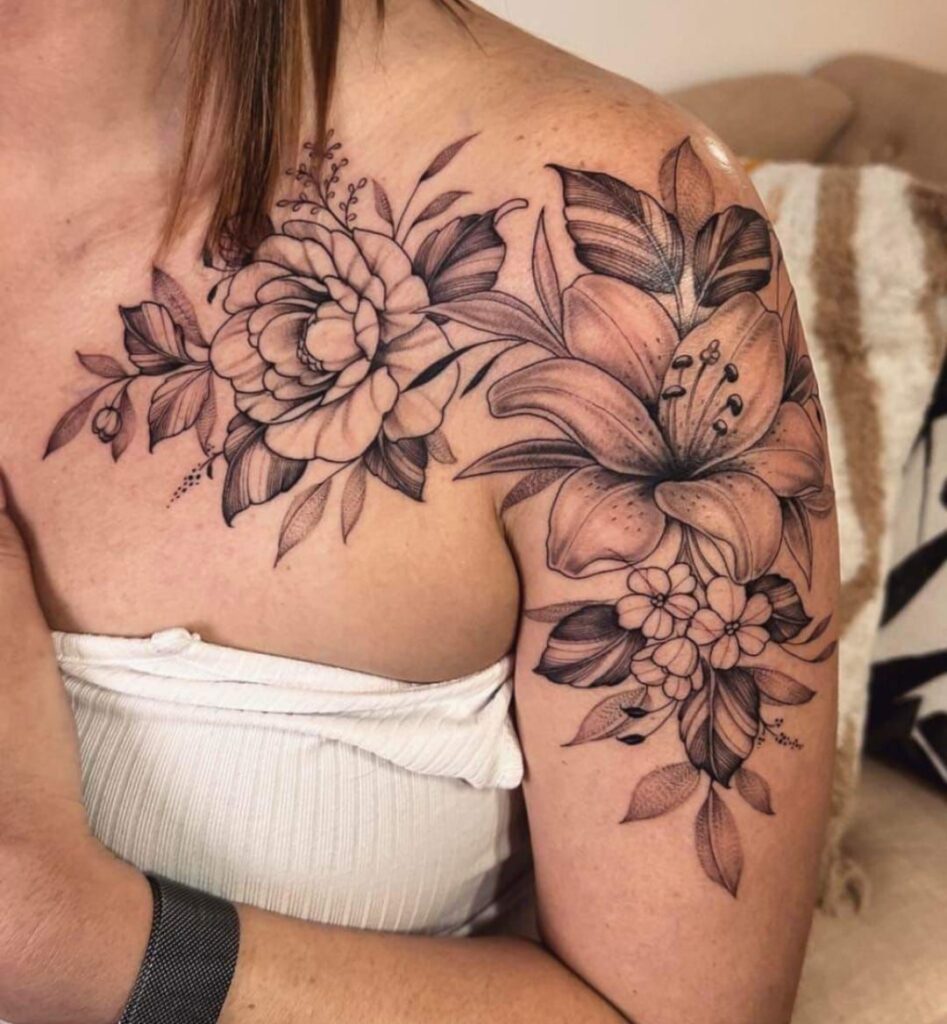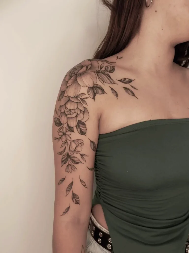 Minimal floral tattoos never go out of style. They offer a soft, delicate look that complements natural body curves without overpowering your overall aesthetic. A fine-line rose, lily, or peony can instantly elevate your shoulder’s visual appeal.