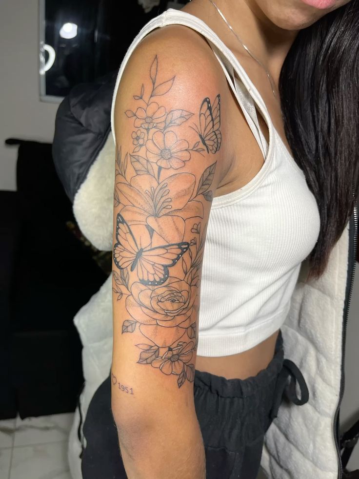 Butterflies represent transformation, freedom, and personal growth. A subtle butterfly design on the shoulder feels light and feminine while still carrying emotional depth.