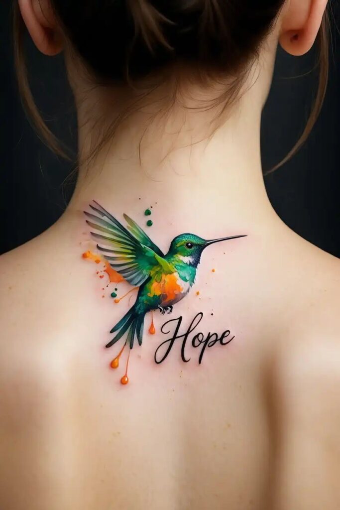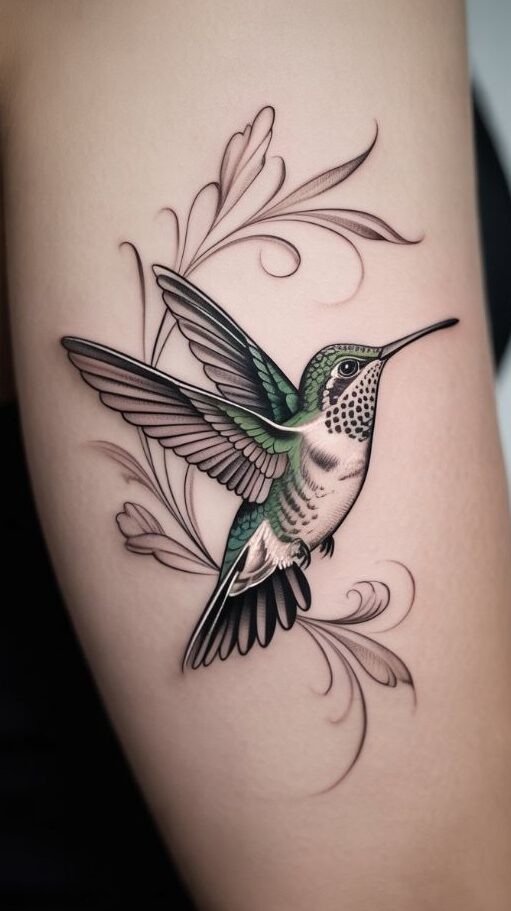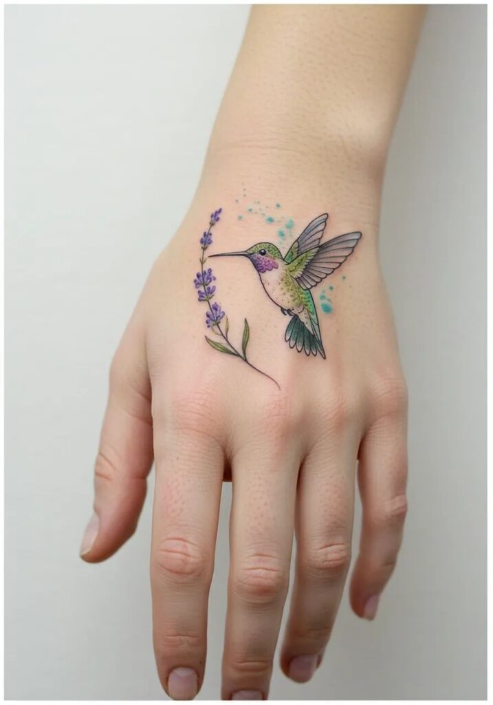 Yes, fine line tattoos can include color—and no, they don’t lose their elegance. A fine line hummingbird tattoo color approach usually uses muted tones.