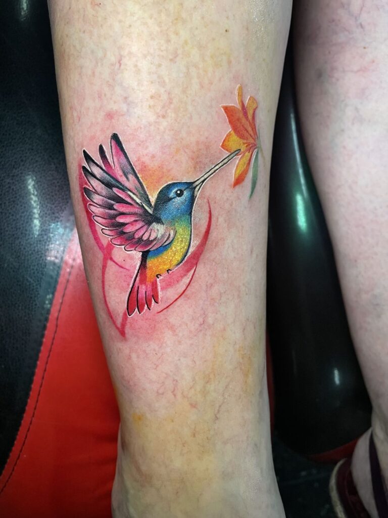 8. Fine Line Hummingbird Tattoo Color