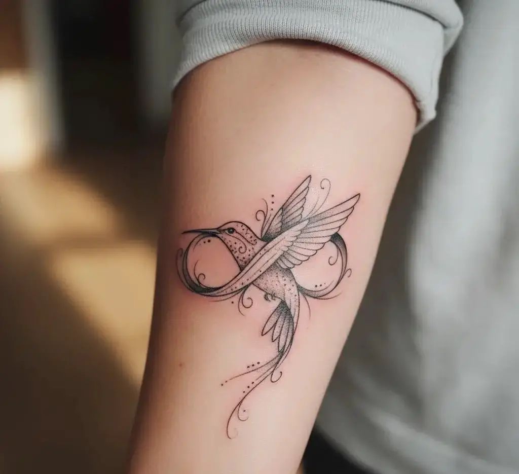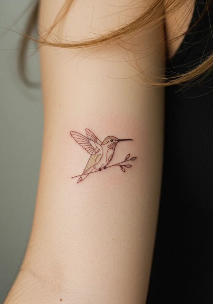 A fine line hummingbird tattoo forearm feels intentional. You see it every day, which makes the symbolism hit harder.
