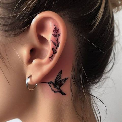 This placement feels intimate. A fine line hummingbird tattoo behind ear stays hidden unless you want it seen.