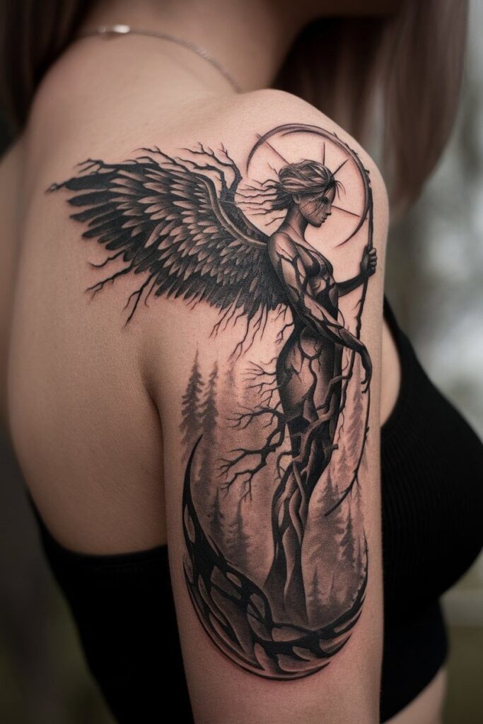 Many women pair this idea with elements you’d see in an angel tattoo, adding softness without killing the edge.