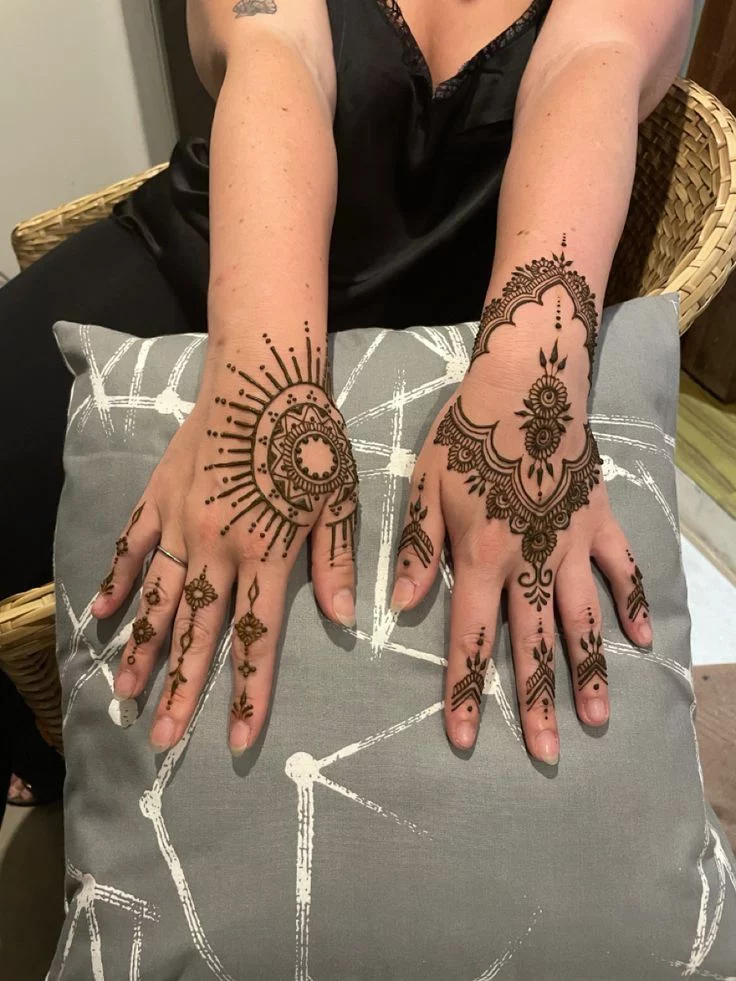 Fusion henna mixes Indian, Arabic, and modern styles seamlessly. When done right, it looks intentional, not chaotic.
