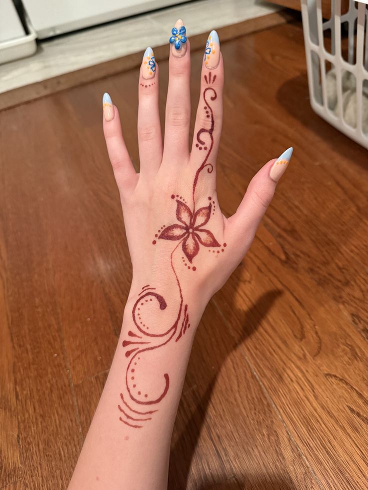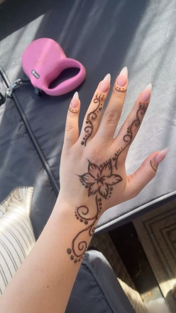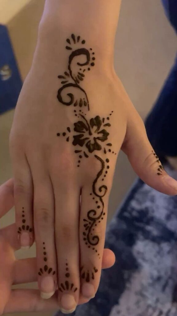 Palm henna designs are classics for a reason. The palm offers a perfect flat canvas for creative patterns, from mandalas to cute floral shapes.
