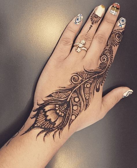 Bohemian-style henna tattoos combine feathers, arrows, and free-flowing lines. They’re whimsical, artsy, and perfect for summer festivals or beach vacations.