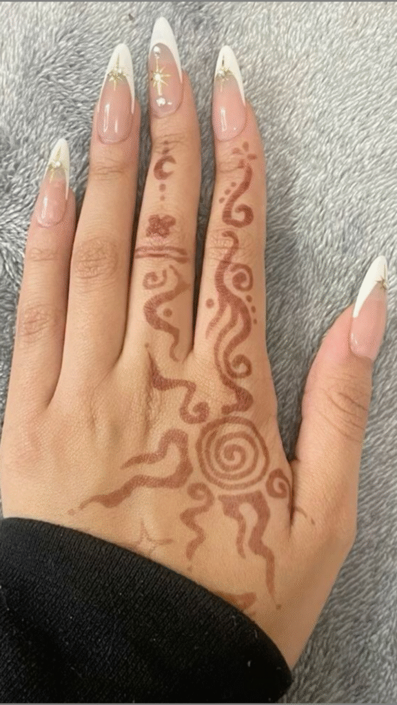 Why stick to one style when you can blend them all? Fusion henna mixes Indian, Arabic, and Moroccan elements to create something fresh and unique.