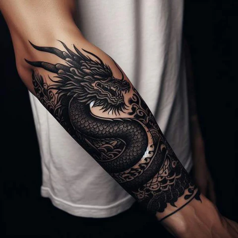 A Japanese dragon sleeve tattoo is a bold choice that wraps around the arm. It often integrates clouds, koi fish, or cherry blossoms, creating a dynamic scene. The flowing body of the dragon perfectly complements the natural curve of the arm, making it a popular option among tattoo enthusiasts.