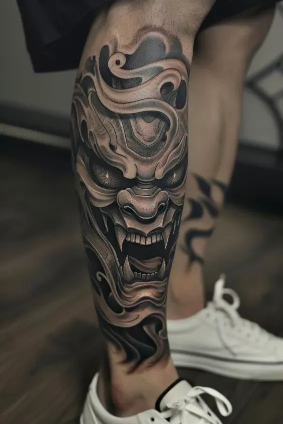 If you’re after power, honor, and old-school cool — Samurai tattoos are unbeatable. The flow of a detailed Samurai design down the calf looks incredible, especially with those sharp lines and shading wrapping around your muscle.