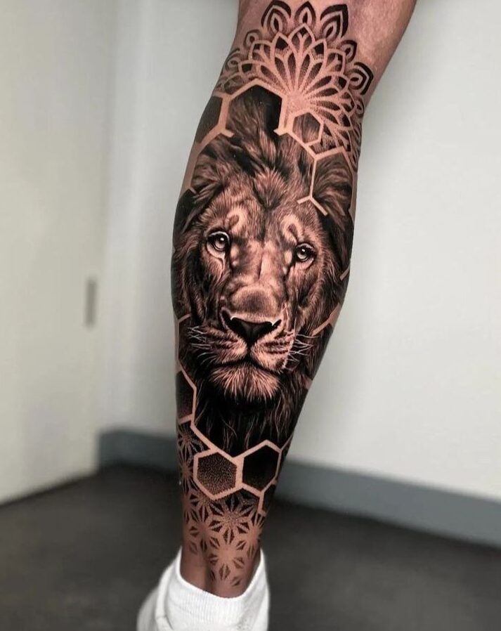 Geometric leg tattoos are visual puzzles that never get old. Clean lines, patterns, and symmetry create an almost hypnotic effect.