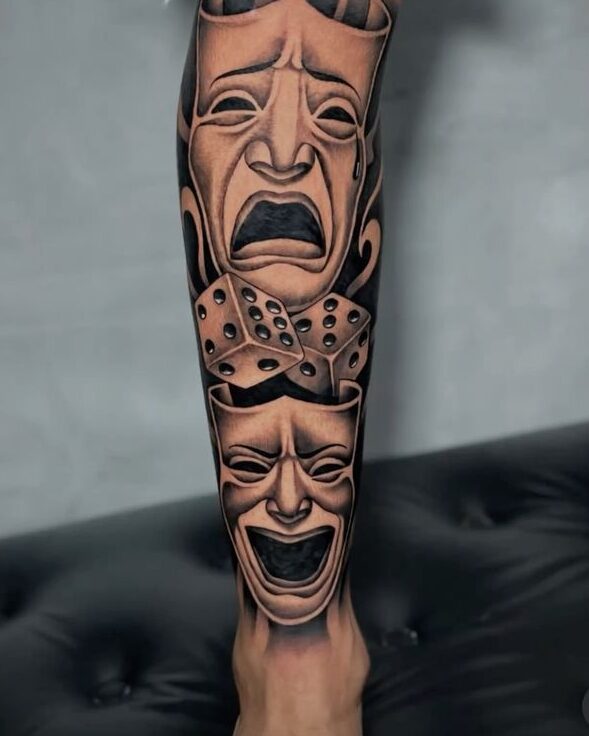 Pair it with roses, clocks, or fire for that extra dramatic flair. No wonder it’s one of the most popular leg tattoos for guys ever.