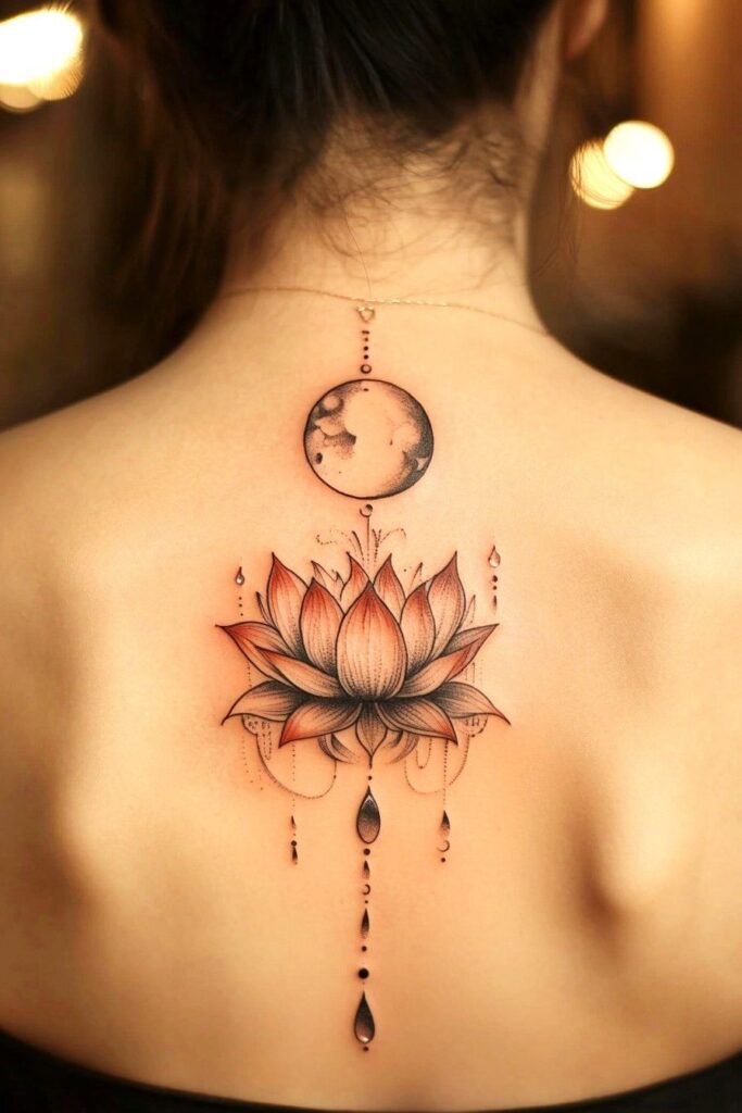 7. Lotus and Moon Tattoo for Emotional Renewal