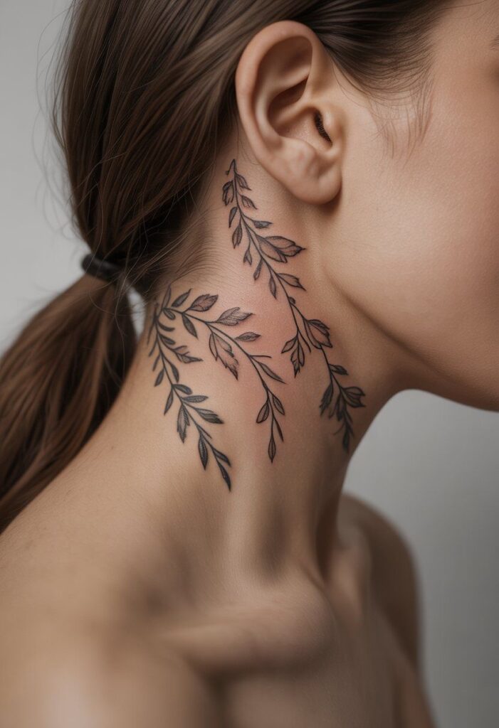 - Neck to shoulder tattoo women vines enhance natural movement