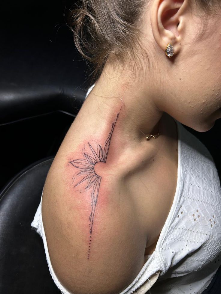 - Neck to shoulder tattoo women flowers like roses, lotus, or lilies