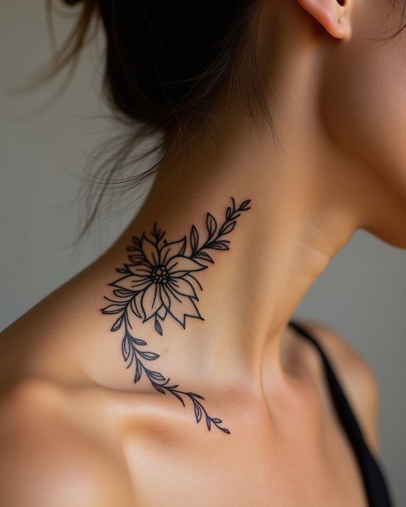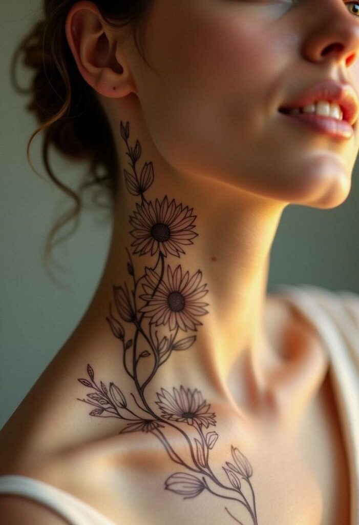 - Neck to shoulder tattoo women floral designs with soft shading