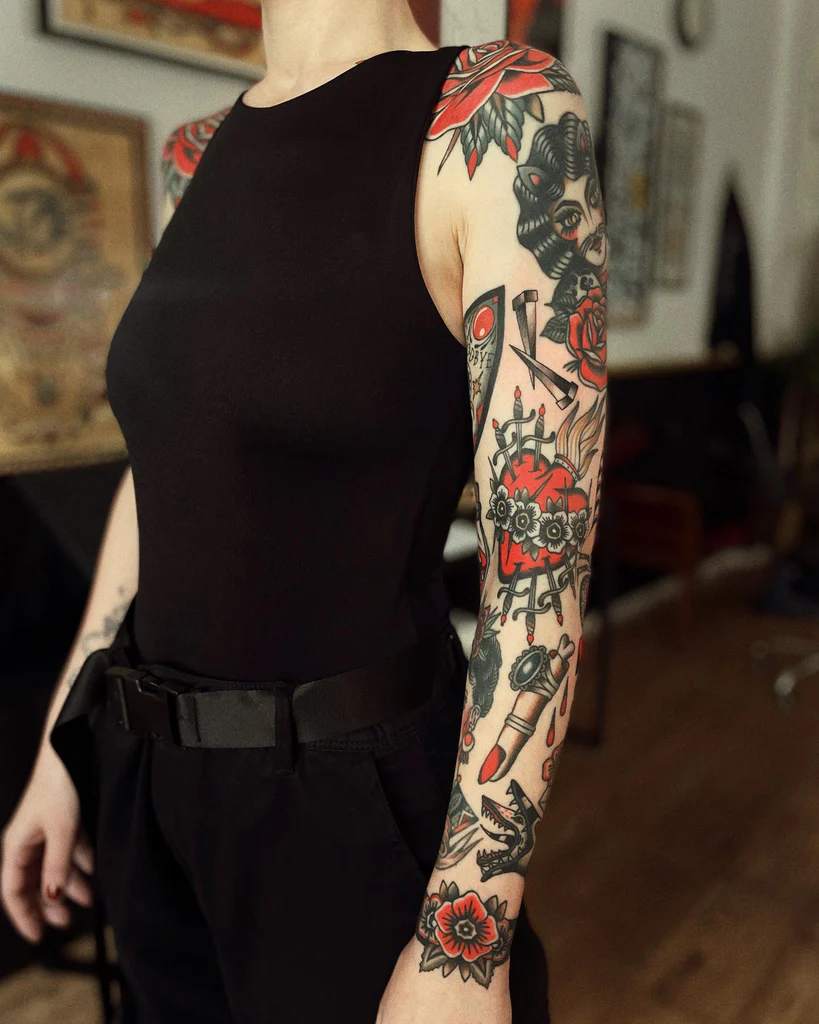 Placement plays a big role in how old school tattoos are perceived. Smaller designs like swallows, anchors, or nautical stars work well on the forearm, wrist, or ankle, while larger pieces like eagles, ships, or pin-up girls often look striking on the chest, back, or thigh. Some people choose to combine several motifs into sleeves, creating a bold collage of classic imagery that tells a personal story.