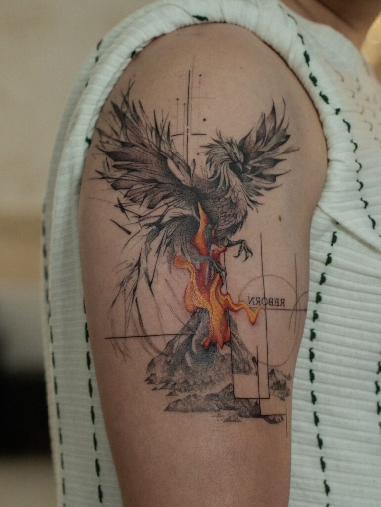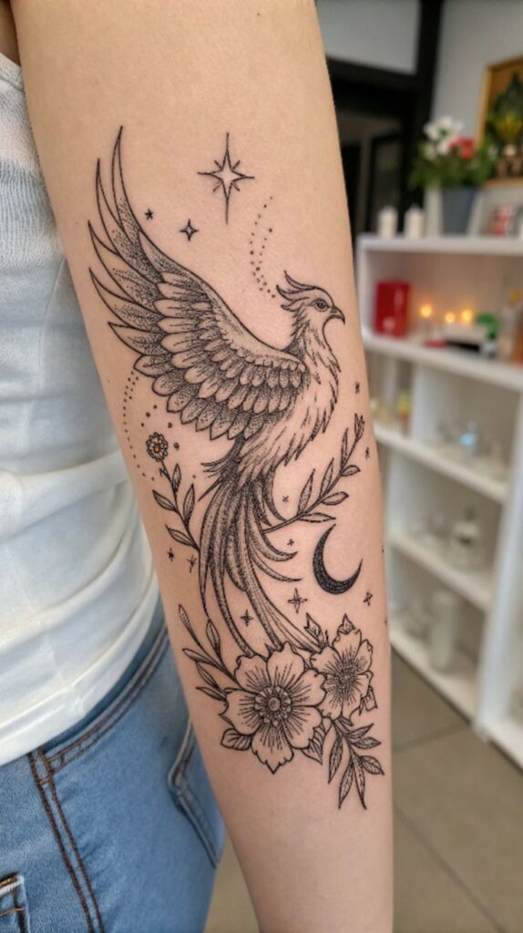 A phoenix wrapped in flames leans fully into the chaos-before-growth energy. I’ve seen this style used after breakups, career crashes, and full-on life resets. The flames represent destruction—but also fuel.