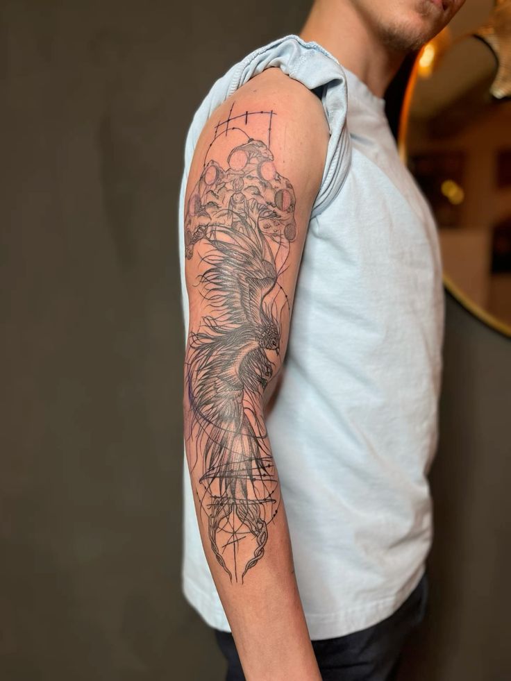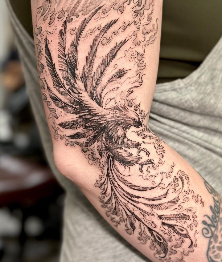 Combining a phoenix with a dragon represents balance between power and rebirth. I’ve seen this used by people who rebuilt themselves after long battles. It’s bold, symbolic, and impossible to ignore.
