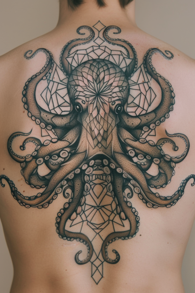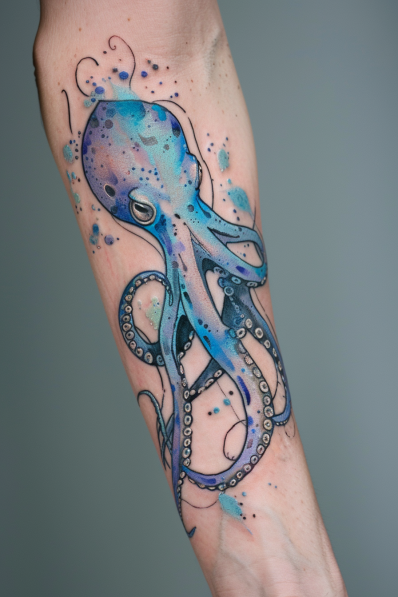 The octopus represents intelligence, flexibility, and mystery. With its ability to adapt and camouflage, it also symbolizes transformation and survival. An octopus tattoo often features intricate details with curling tentacles, making it a striking design for larger placements like the back, chest, or thigh. This sea animal tattoo embodies complexity and strength.