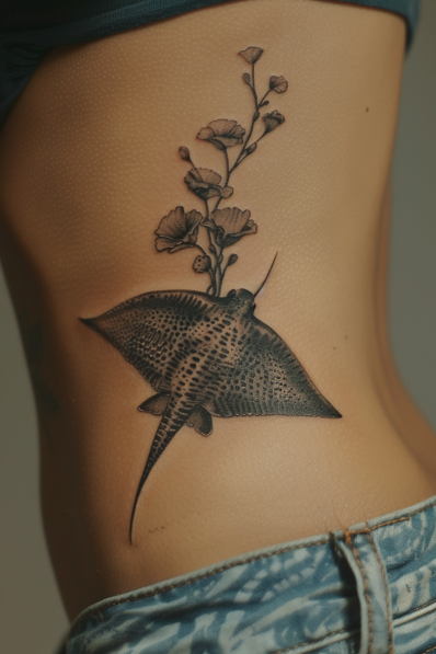 Stingrays are calm and graceful, gliding effortlessly through the sea. A stingray tattoo represents balance, freedom, and intuition. Because of their unique shape, stingray tattoos look particularly striking when inked on the arm, shoulder, or back, often styled in black and grey or Polynesian tribal patterns.