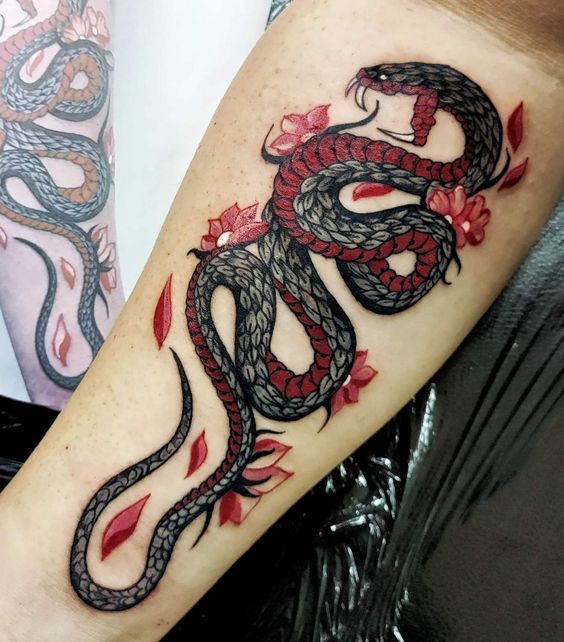18. Snake and Flower Tattoo