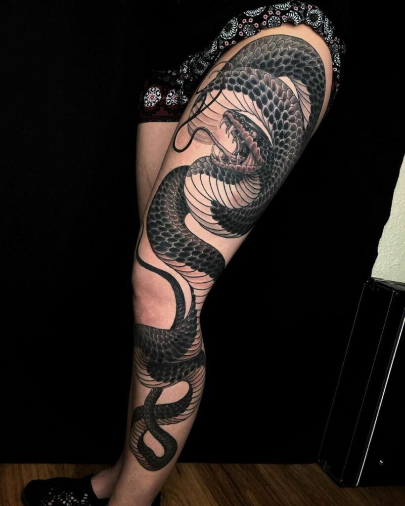 16. Snake Wrapped Around Leg Tattoo