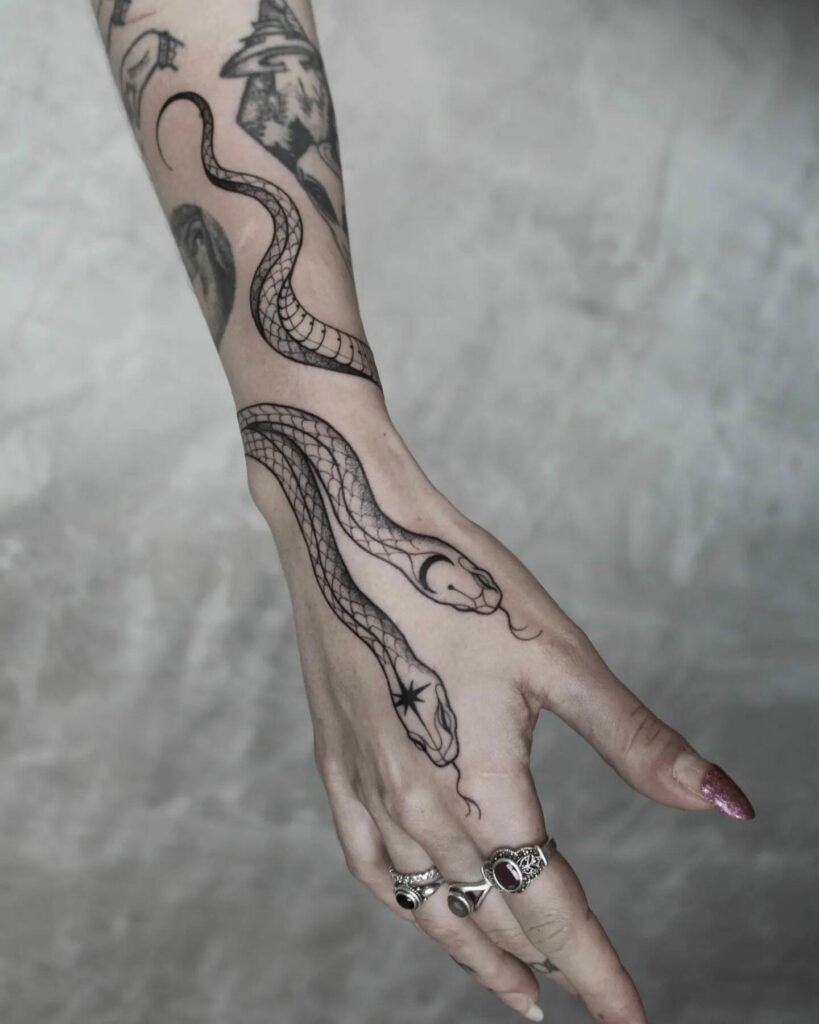 15. Snake on Hand Tattoo