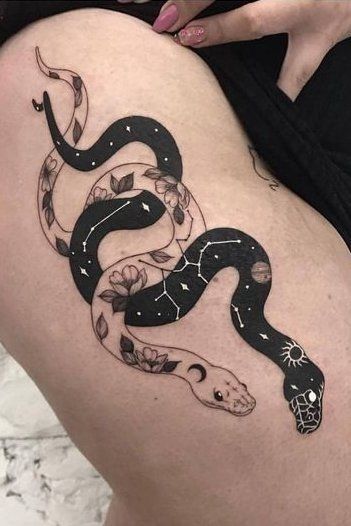 Whether it’s a feminine snake tattoo with flowers or a minimalist linework piece, it always exudes confidence.