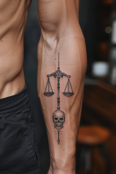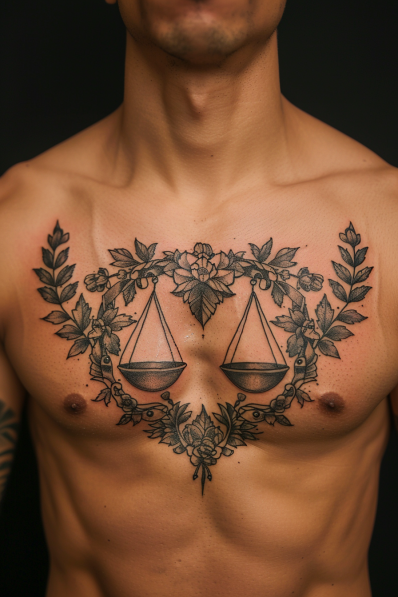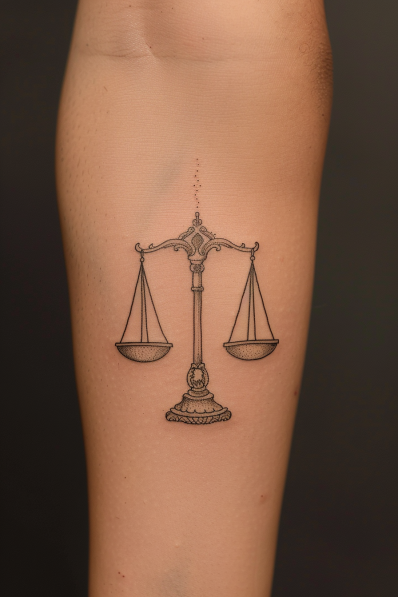 The most iconic representation of Libra is the scales. A tattoo featuring balanced scales symbolizes fairness, equality, and a calm, rational outlook on life. This design works beautifully in both minimalist line art and elaborate, detailed renderings with ornate embellishments. It can be placed on the forearm, chest, or back for a bold statement.