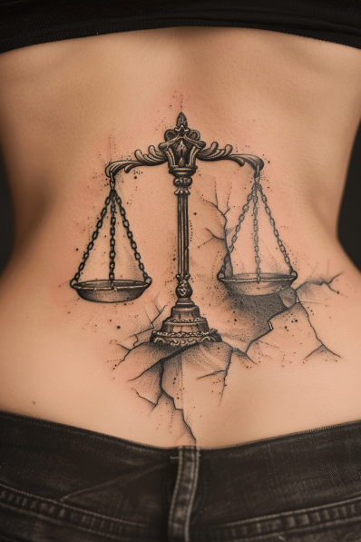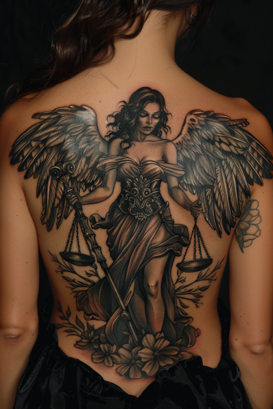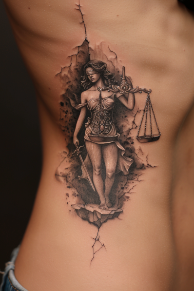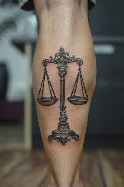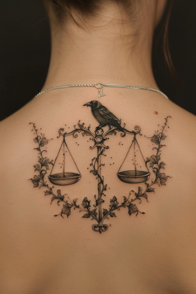 A more dramatic approach includes depicting Lady Justice holding the scales. This design ties directly to Libra’s symbolism of fairness and law. It makes for a bold, statement-making tattoo that looks striking on the back, thigh, or upper arm, showcasing strength and empowerment.