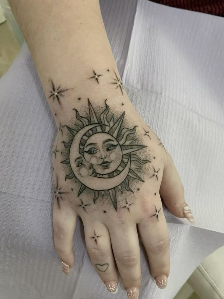 Adding stars gives the design an extra layer. The moon tattoo often features tiny stars, while the sun stays bold and radiant.
